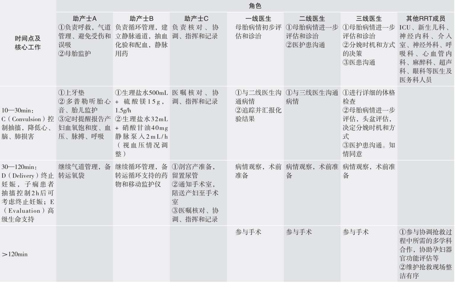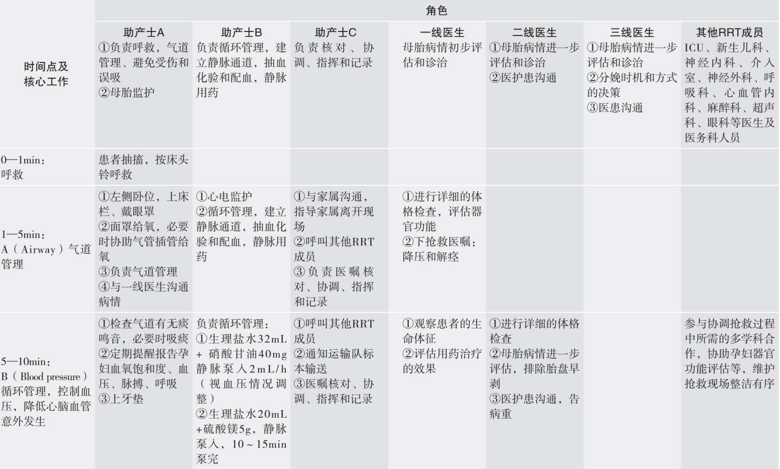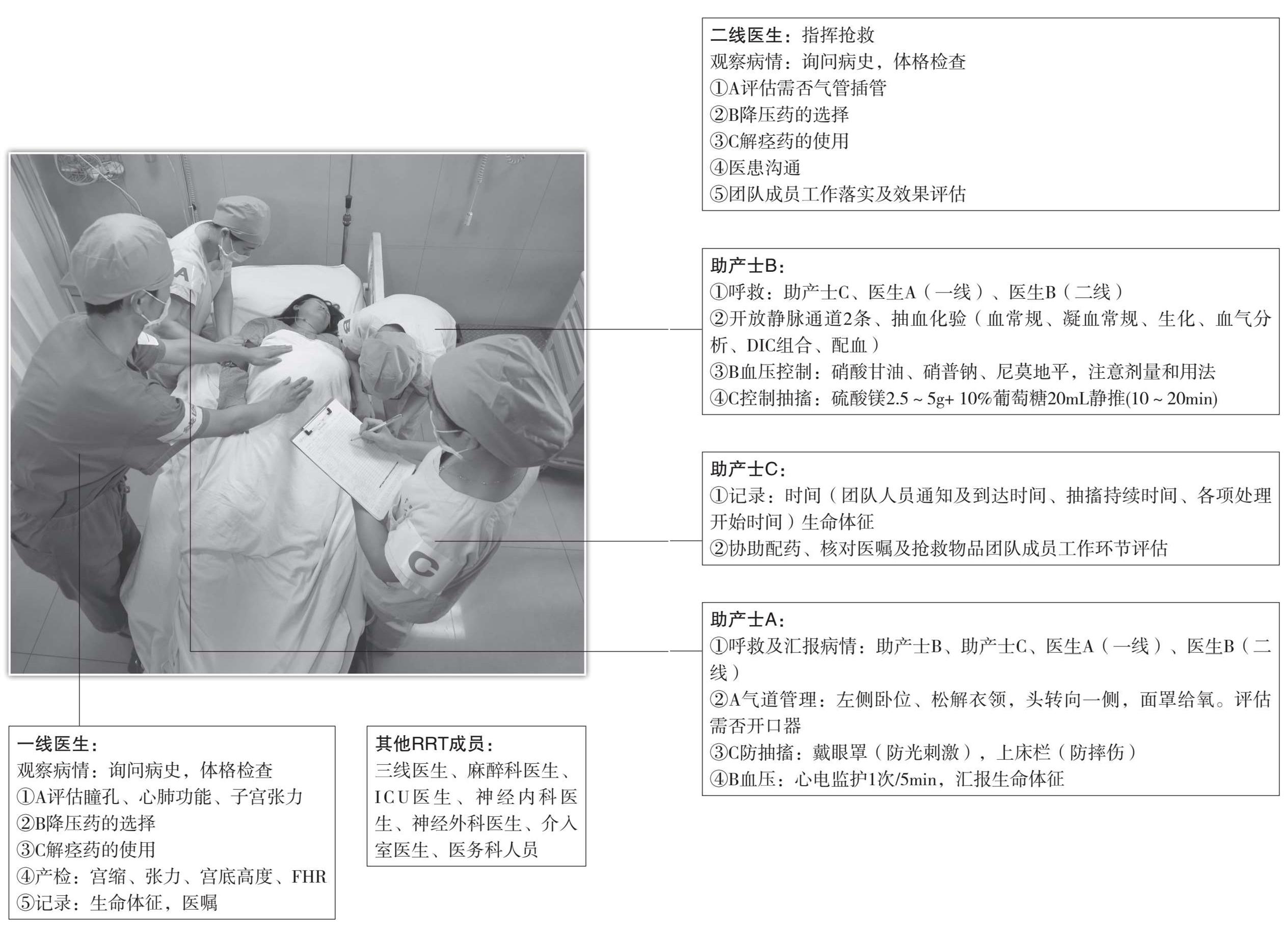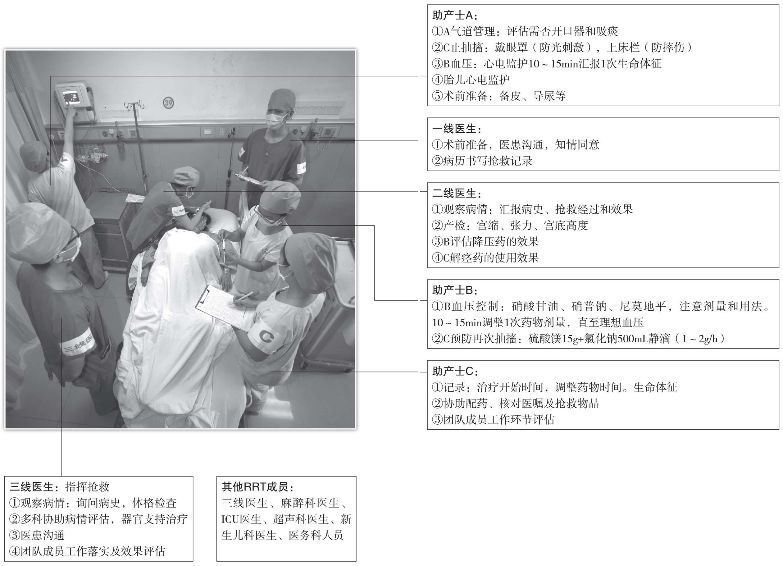 呼救: 助产士C、医生C(三线)和ICU、新生儿科、神经内科、呼吸科、心血管内科、麻醉科、超声科等医生。
