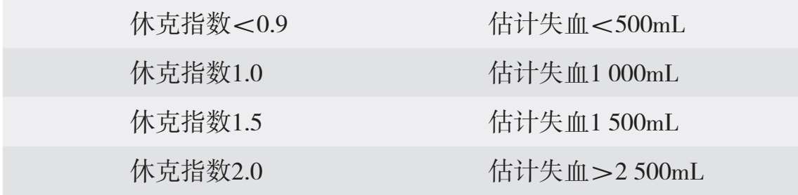休克指数=心率(次/min)/收缩压(mmHg)=(正常<0.5)