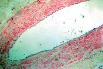 图2-14 动脉自内向外为内膜、中膜、外膜