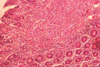 镜下 可见肠系膜淋巴结常常严重累及,淋巴结实质内胞浆丰富的伤寒细胞单个存在,弥漫分布或形成小结节。还可见大量浆细胞浸润及小灶坏死(图3-6至图3-9)。
