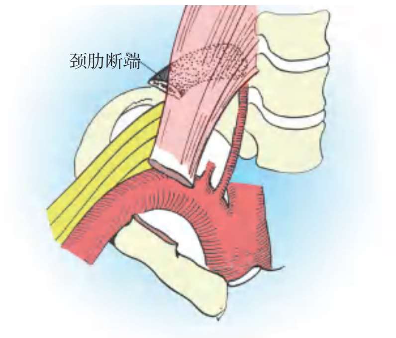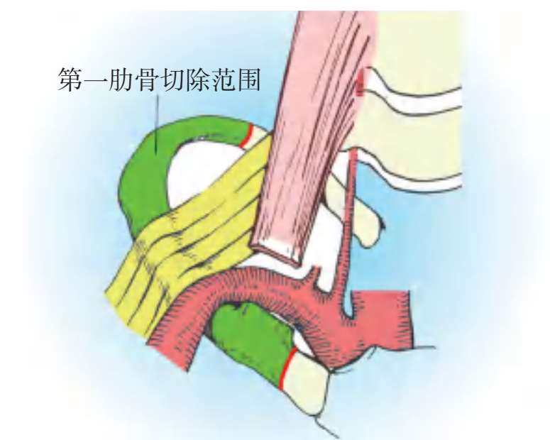 (1)切断前斜角肌或切除第一肋骨时,若发现颈肋或异常腱索,则应同时切除之。