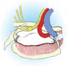 2.麻醉与卧位 一般采用局部浸润麻醉,个别病例气管插管全麻。在头盆环牵引下的患者取仰卧位,患侧背部略垫高,在局部浸润麻醉下进行手术。不在头盆环牵引下的患者也可在气管插管麻醉下手术。