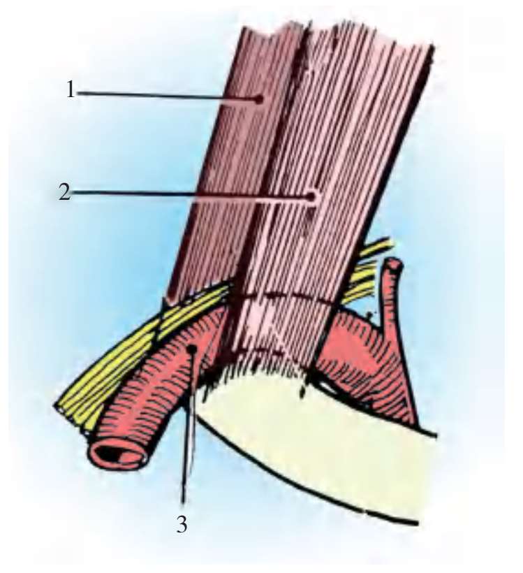 (1)锁骨下动脉的损伤:锁骨下动脉位于前斜角肌远端的深层,切断前斜角肌肌腱之前,应仔细分离、游离其肌腱,并通过弯钳挑起肌腱再切断,以免损伤锁骨下动脉,更不能用电刀切断,因为电刀距离血管近了,容易造成误伤。