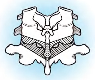 如单纯椎板截骨后,截骨间隙仍不能闭合者,则必须做椎弓椎体联合截骨术,楔形切除椎体后缘或椎间盘,使其达到椎弓椎体次全截骨术时,方能使角状脊柱后凸得到矫正。