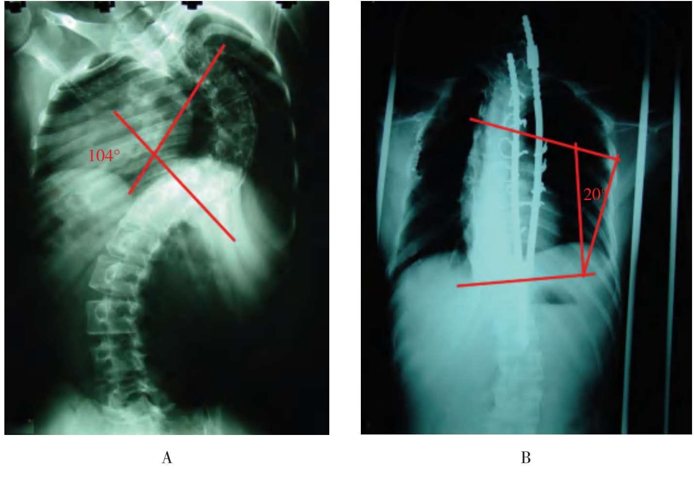 图3-11 患者女,16岁,特发性重度脊柱后侧凸伴胸廓塌陷畸形