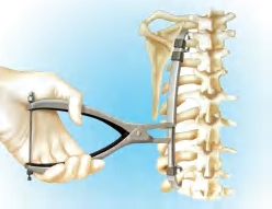 图3-35 分次撑开时,只做3cm长的小切口,用撑开钳撑开和重新锁定即可