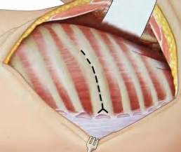 图3-38 暴露并肋,并显示并肋分开的截骨线