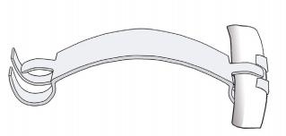 图3-42 撑开器的三叉钩挂在肋骨上,复温后抱紧肋骨,撑开器的体部复温后由弯变直产生撑开作用