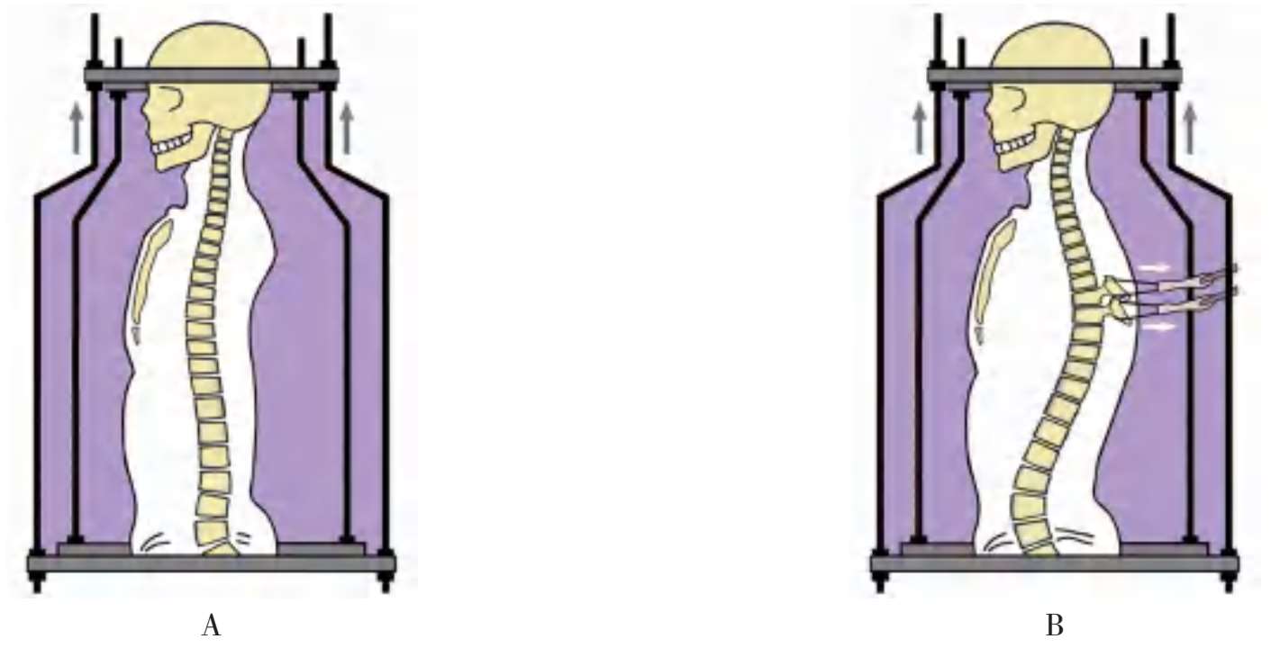 矫正脊柱侧弯的同时,重建生理性胸后凸,加大胸腔的矢状径,增加呼吸量,改善肺功能,延长患者的生存率。在发育期间的儿童采用颅盆环牵引加水平牵引矫正胸椎前凸,然后用置入器械内固定来维持所产生的矫正效果,使生理性胸后凸消失或胸椎前凸得到矫正,这是本手术的治疗目的。颅盆牵引加水平牵引能松动胸段脊柱周围的软组织,使伴有胸椎前凸脊柱的后侧软组织产生蠕变松解,为下一步人工形成胸后凸和置入器械内固定创造条件。颅盆牵引加水平牵引的治疗方法适应于发育期间的儿童。但对那些年龄偏大的病例,因其胸廓发育比较成熟,单纯采用牵引的方法,有时也难以松解脊柱周围作用力强大的软组织。故应配合应用双侧肋骨切断成形术和软组织松解术,方能达到人工形成胸后凸的目的。