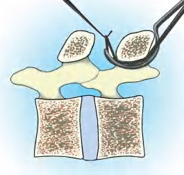 图3-65 四股10号线通过椎板下拉出,准备作牵引用