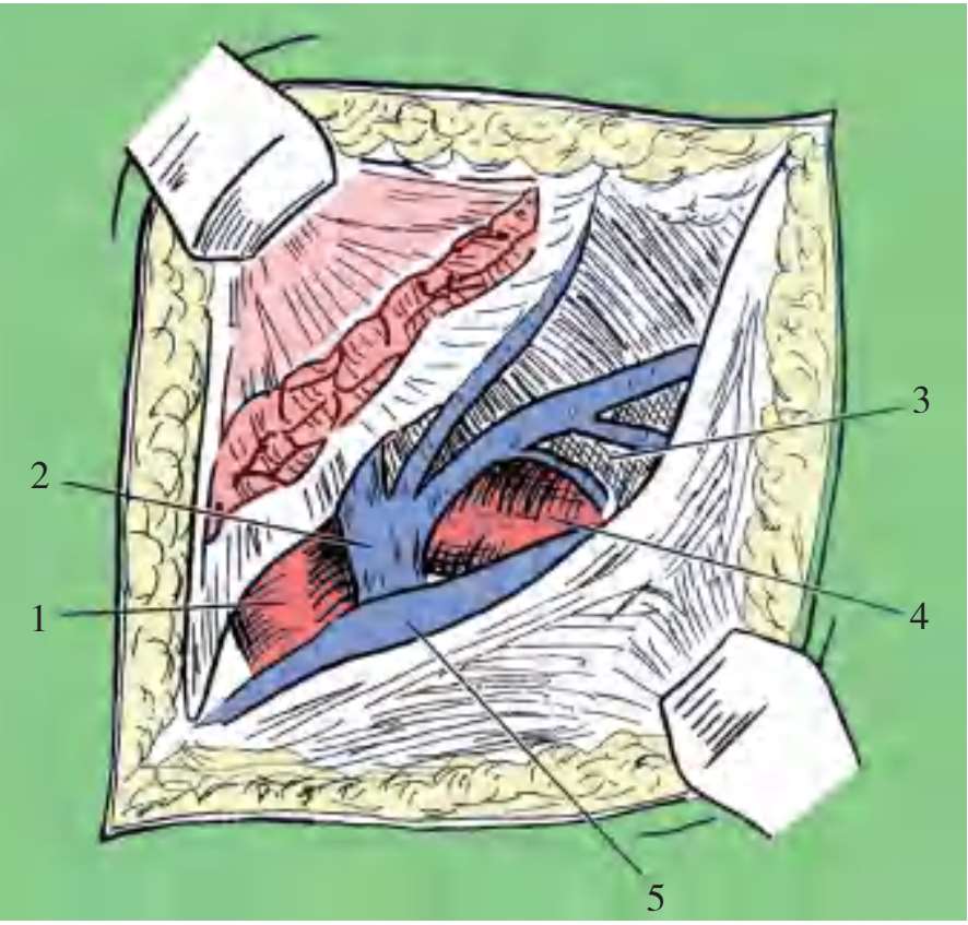 1.颈总动脉;2.颈内静脉;3.颈深筋膜及血管鞘;4.锁骨下动脉;5.锁骨下静脉