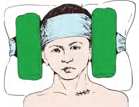图1-38 术后将头颈放在矫正位,用沙袋固定