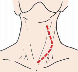 图1-43 沿胸锁乳突肌作纵弧形切口