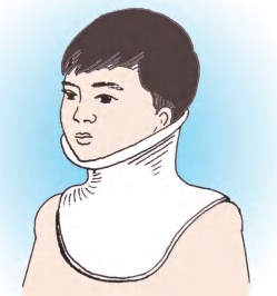 (2)将胸锁乳突肌及挛缩的纤维组织切除干净后,仔细止血,放置引流片引流,逐层缝合切口,术后保持矫正位固定(图1-45)或给予枕颌带牵引治疗(图1-46)。