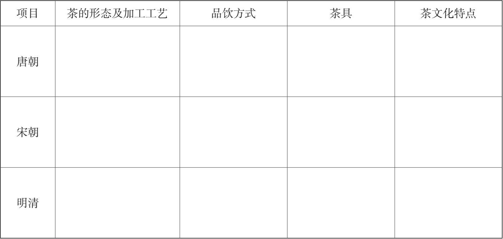 _____2. 唐中晚期盛行煎茶,煎茶法用的茶是饼茶。