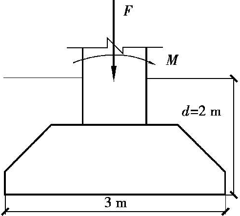 例 2.2某独立基础,底面尺寸 l × b = 3m × 2m,埋深 d = 2m,如图2.9所示,作用在基础顶面荷载 F k = 1 000kN,力矩 M = 200kN·m,计算基底压力 p kmax , p kmin 。