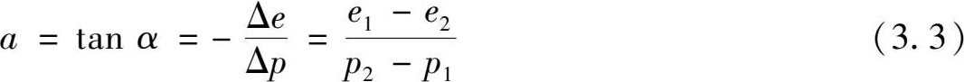 式中负号表示随着压力 p 的增加, e 逐渐减少。