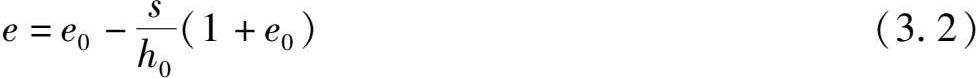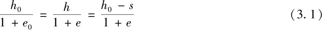 如图3.3所示,设土样的初始高度为 h 0 ,受压后的高度为 h , s 为外压力作用下土样压缩至稳定的变形量,则 h 0 = h - s 。