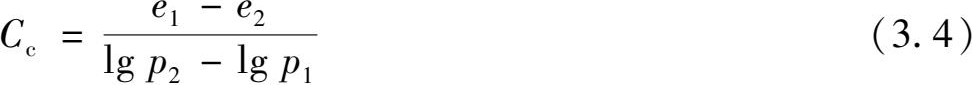 如果采用 e -lg p 曲线,如图3.4(b)所示,当压力较大时, e -lg p 曲线后段接近直线,直线段的斜率用 C C 来表示,称为压缩指数,即