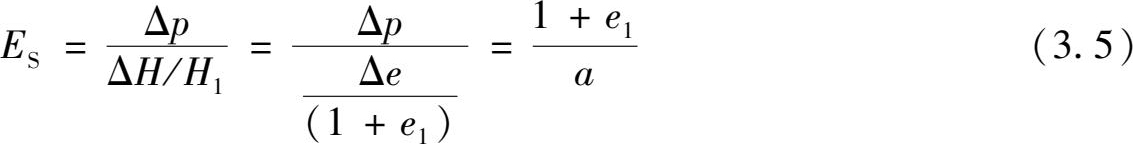 土在完全侧限的条件下竖向应力增量 σ Z 与相应的应变增量 ε Z 的比值,称为压缩模量 E S ,根据定义可推导出其表达式为