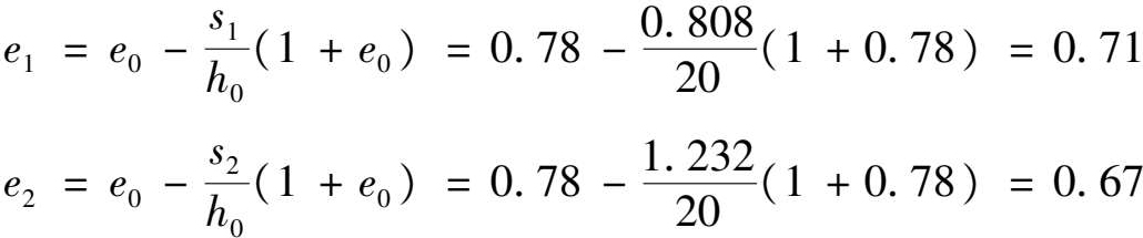 e 2 ——相应于 p 2 作用下压缩稳定后土的孔隙比。