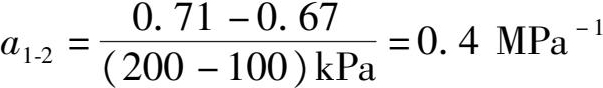 压缩系数越大,土的压缩性越高,不同类别、不同状态的土,其压缩性可能相差较大。对于同一种土而言,压缩系数也并非常数,在不同的压力段,压缩系数值也不同,随着压力增加,压缩系数 a 值将减小。为了统一标准,在工程实践中,地基土的压缩性通常采用 p 1 = 100kPa和 p 2 = 200kPa时,相对应的压缩系数值 a 1-2 作为评价土体压缩性的标准。