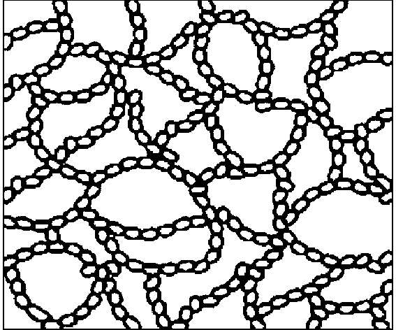 粒径极细的黏土颗粒在水中长期悬浮,这种土粒在水中运动,相互碰撞而吸引,逐渐形成小链环状的土集粒,质量增大而下沉,当一个小链环碰到另一个小链环时相互吸引,不断扩大形成大链环状的絮状结构,如图1.5所示。