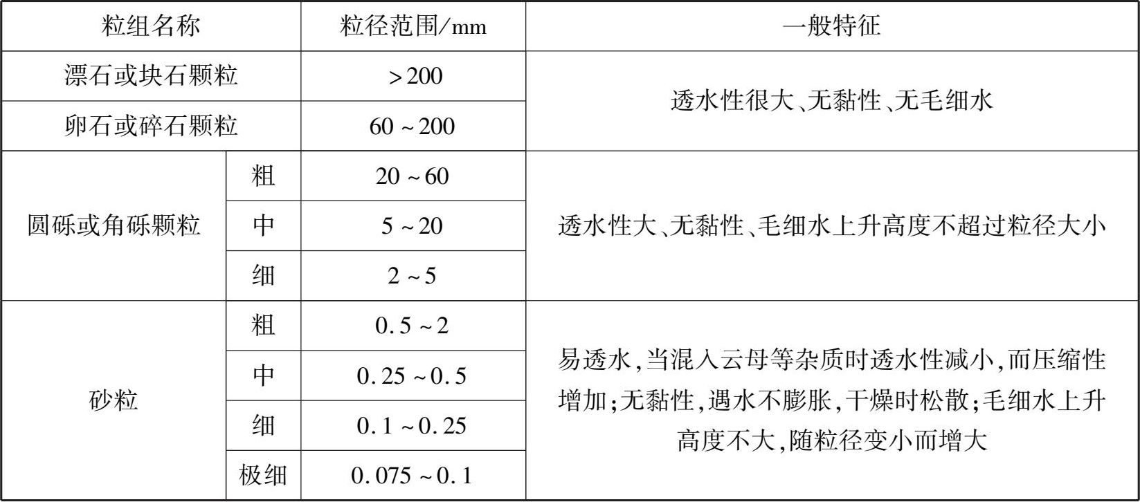 表1.1 土颗粒组划分