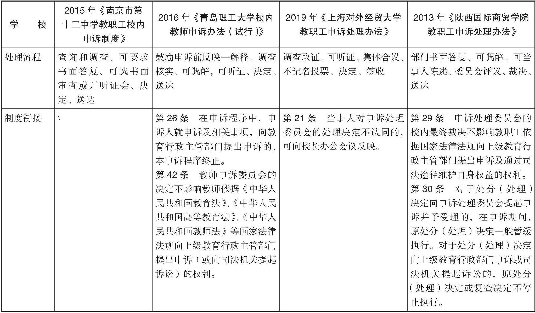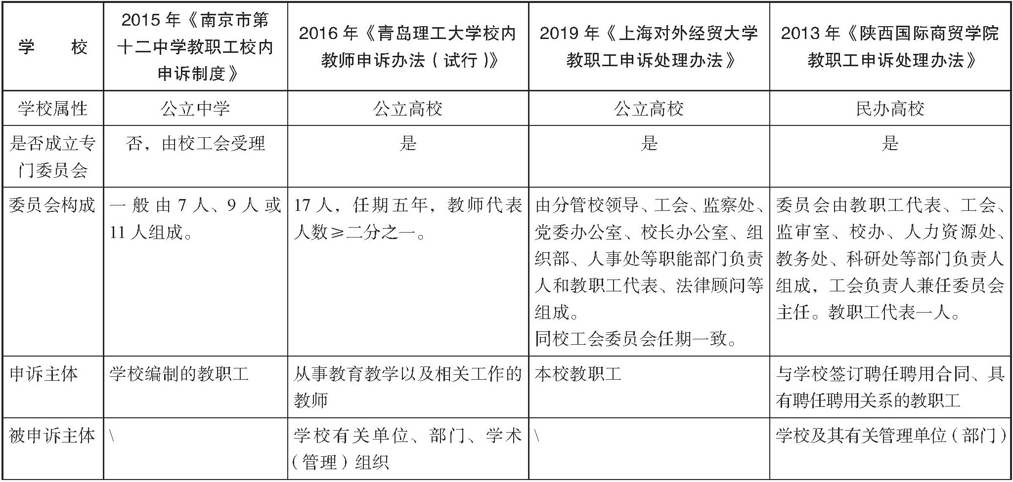 表2 部分学校教师校内申述办法的核心内容