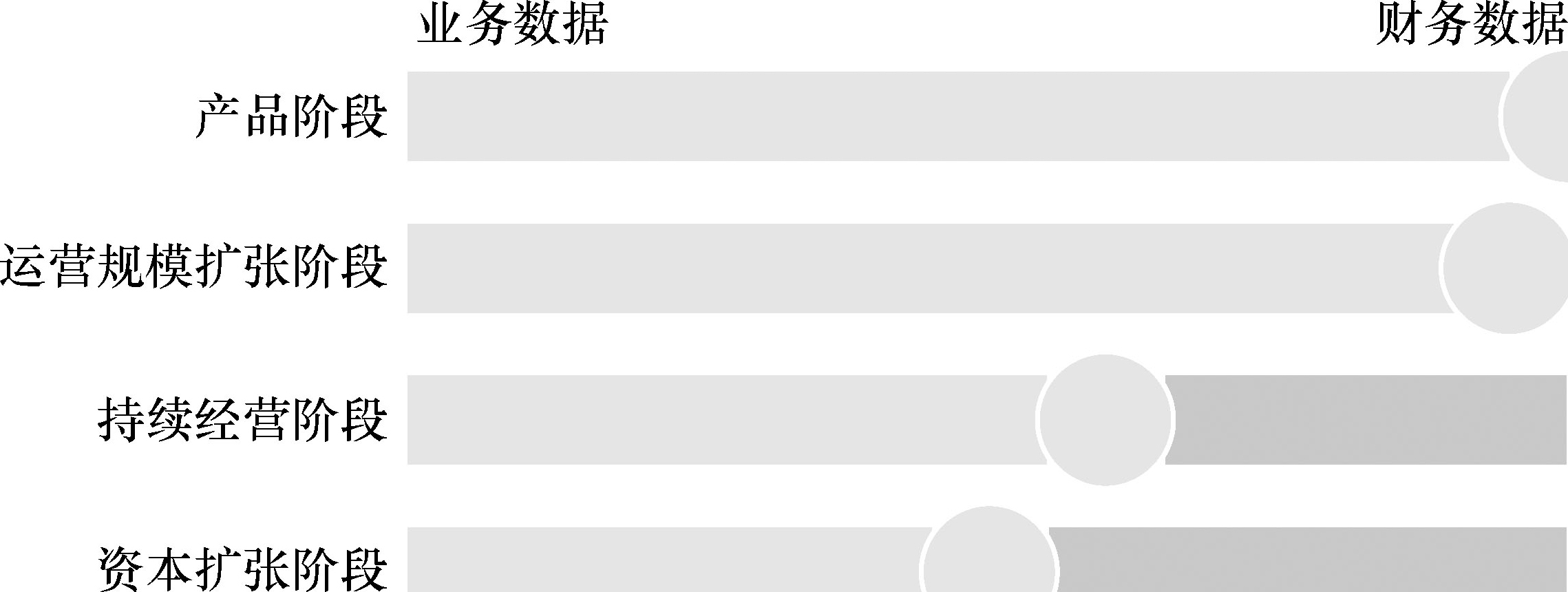 资本扩张阶段的企业更加庞大和复杂,财务数据相比于业务数据能更加系统全面地反映企业经营情况,但这并不意味着财务数据就脱离了业务数据。例如,我们在分析企业的净资产收益率(ROE),即企业利用获得的资金为股东创造多少收益时,需要了解这些收益有哪些,获得的资金来源有哪些。比如,收益主要来自手机销售,那么手机日常生产多少部能够满足企业销售需求,这就需要企业结合业务数据来进行决策。