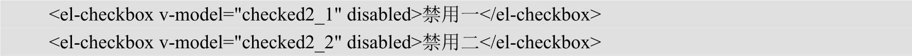 (2)多选框禁用状态。只需要在el-checkbox标签中添加disabled属性即可实现多选框禁用状态,多选框禁用状态可分为未选中禁用状态和已选中禁用状态。代码如下: