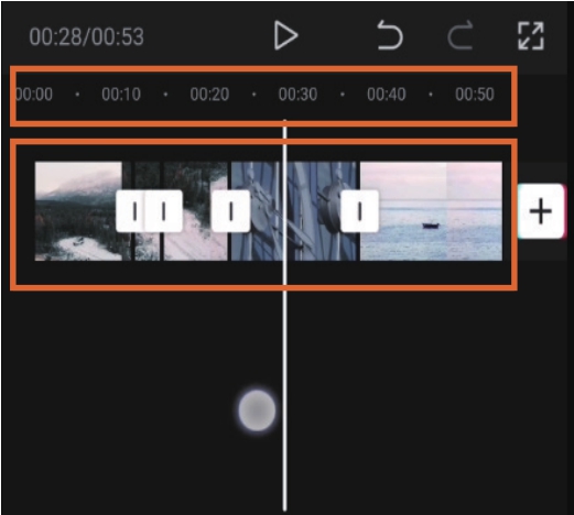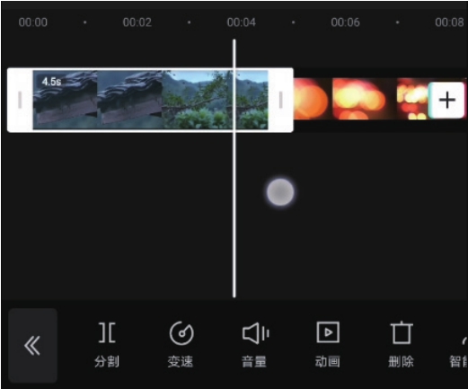 此时可以将视频轨道“缩短”(两个手指并拢,同缩小图片的操作),从而让时间轴移动较短距离,即可实现视频的大范围跳转。