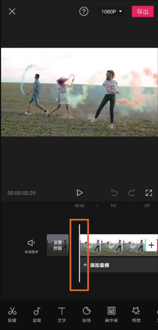 无论是添加文字,还是添加音乐、滤镜、贴纸等效果,对于视频后期处理,都需要确定其覆盖的范围,也就是确定从哪个画面开始到哪个画面结束应用这种效果,具体的操作步骤如下。