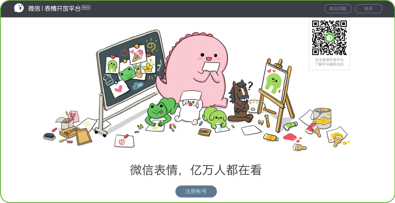 我们所熟知的微信表情,早期只是引入一些国际知名形象,数量十分有限。2015年7月29日,平台向艺术家们发出投稿邀请,微信表情平台正式开放。随着创作者的不断加入,微信表情平台的作品数量迅速增加,现已发展成国内最大的表情开放平台。