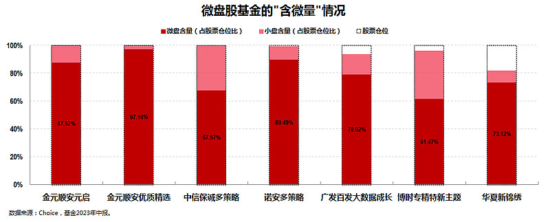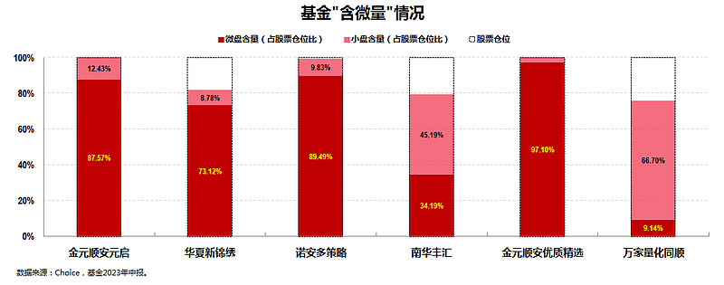 基于2023年中报数据,上图基本囊括了当前市场上“含微量”超过50%的真·微盘股基金。