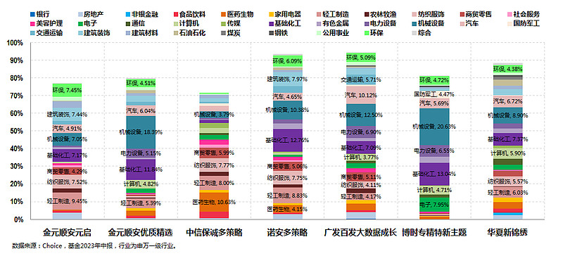 其次,从行业配置的角度来看 ,与金元顺安元启较为类似的分别是中信保诚多策略和诺安多策略。