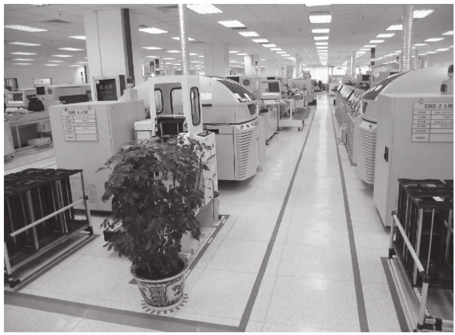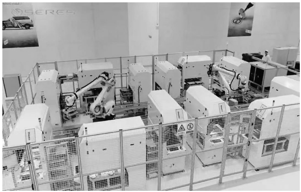6S管理实现智能工厂车间的秩序感。智能车间的设备包括机器人,布置密集,需要进行合理的现场布局,体现在人的行走通道、自动机器人行走路线、智能设备作业区域等。智能车间场景如图1-17所示。