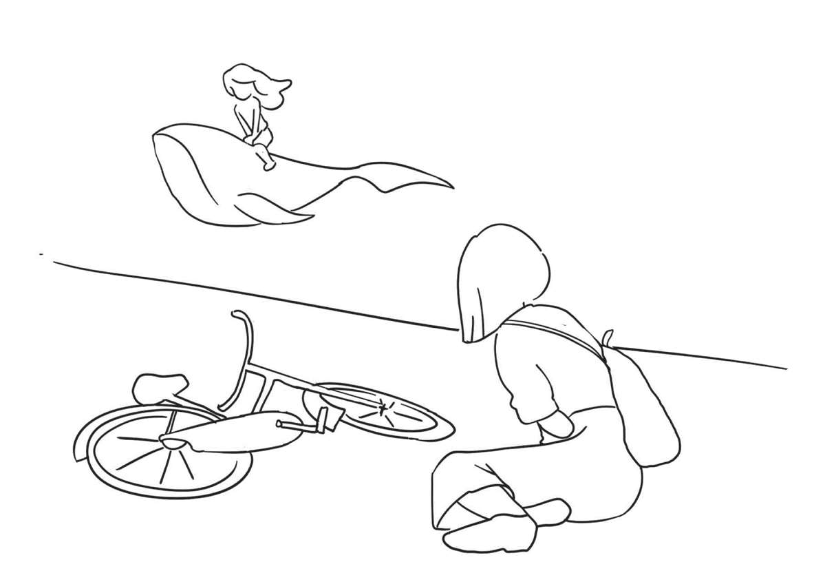 前面不远处又有一个观景点,有一幅画特别大,比别处的都要大,所以也特别亮,特别炫目。刘海蓝几乎不相信自己的眼睛,她用力蹬车,朝着画的方向奔去。她忽视了前头有人在缓慢地骑着车子,她撞了上去,翻倒的人是她,剧痛从她的膝盖和擦地的手掌上传来。她的眼睛仍然朝向那幅画,她哇的一声哭了——哭声仿佛一直存在她的胸口,很多很多年了,终于找到一个突破口冲了出来。
