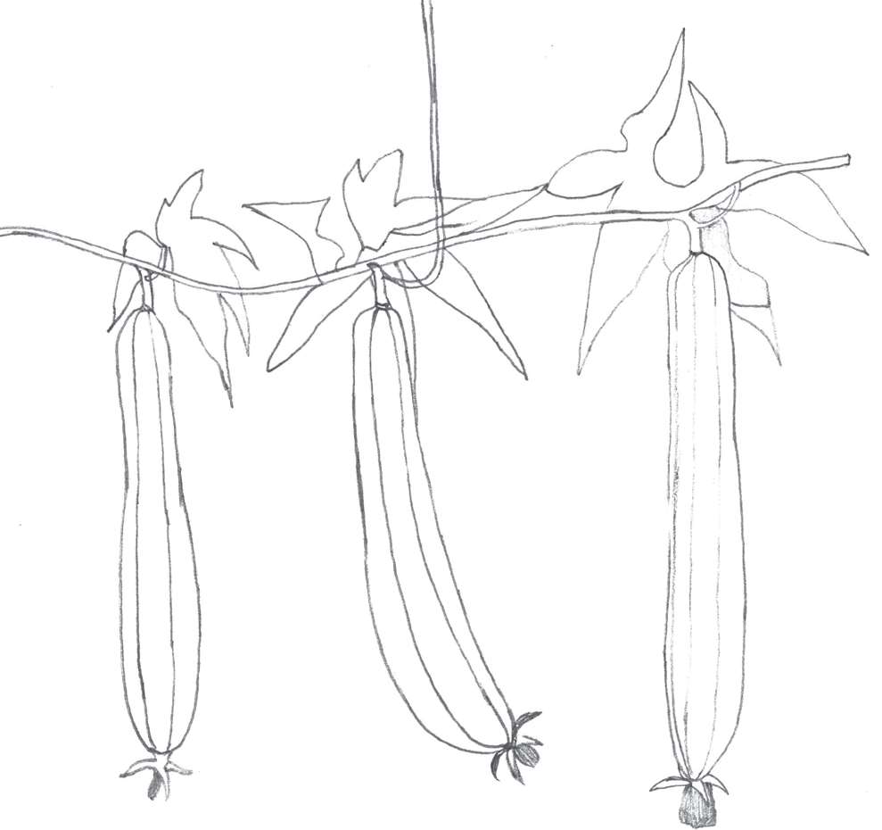 丝瓜,又名天丝瓜、天络瓜、天吊瓜、绵瓜、布瓜、洗锅罗瓜等。李时珍《本草纲目》载:“丝瓜,唐宋以前无闻,今南北皆有之,以为常蔬……嫩时去皮,可烹可曝,点茶充蔬。老则大如杵,筋络缠纽如织成,经霜乃枯,惟可藉靴履,涤釜器,故村人呼为洗锅罗瓜。内有隔,子在隔中,状如栝蒌子,黑色而扁。其花苞及嫩叶卷须,皆可食也。”
