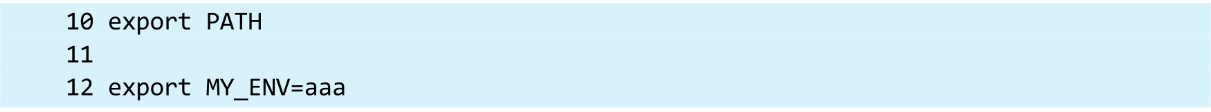 可以做个简单的测试,先在bash A上使用export来设置MY_ENV,再运行bash命令,启动一个bash子进程B,在bash B上打印printenv,此时printenv是bash A的孙子进程了,仍然会输出MY_ENV的值,说明可以访问MY_ENV。同样的操作,如果不使用export来设置,直接用等于(=)来设置,则printenv打印出来的变量就没有MY_ENV了。