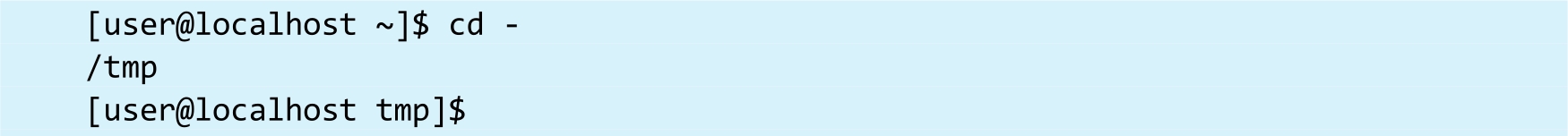 使用cd -,可以退回到cd切换之前的目录,如下所示,cd切换之前的目录是 /tmp,后来使用cd~切换到了当前用户的home目录,再使用cd-,会切换回/tmp。注意,如果再次运行cd-,又会切换回home目录,并不会一路后退。