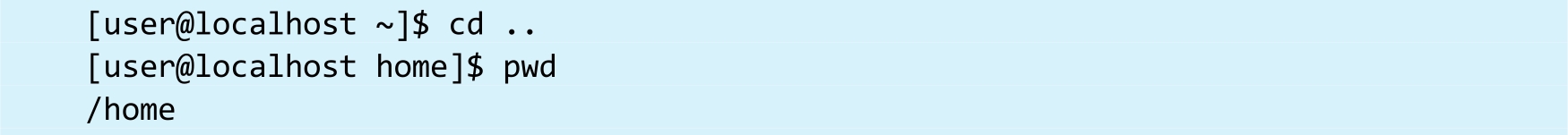 使用cd ..,可以切换到当前目录的父目录,如下所示,当前目录是 /home/user,使用cd ..后,退回到父目录,即 /home。
