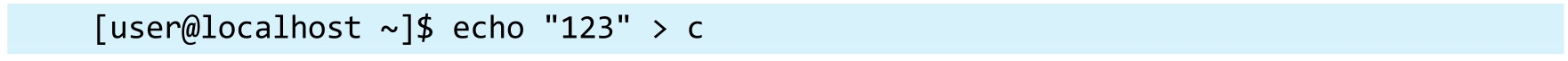使用echo将内容123输出到文件c中,以此创建新文件c,命令如下。