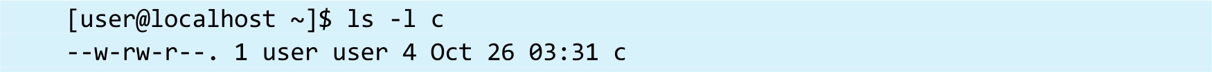 使用字母法去除 /home/user/c文件Owner的read权限,操作如下。