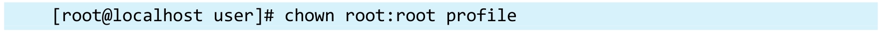 4)然后使用chown修改profile的Owner和Group为root,命令如下,root:root中第一个root表示Owner,第二个root为Group,如果要修改成其他的Owner或者Group,修改对应位置的名字即可。