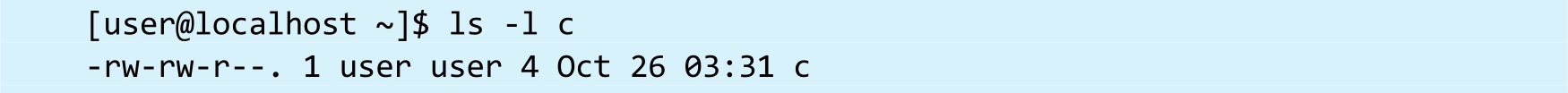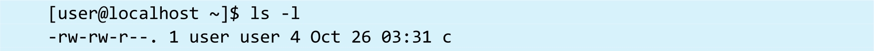 首先查看文件c的权限,命令如下,可以看到Owner的权限位是rw-,Group的权限位是rw-,Other的权限位是r--。