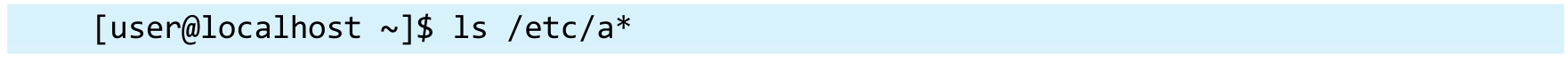 示例命令如下,* 可以匹配任意长度的字符串,例如a* 就表示所有以a开头的字符串,使用ls/etc/a*可以列出/etc下所有a开头的文件(包括目录),如下所示。