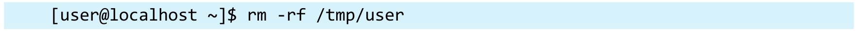 删除目录/tmp/user,命令如下,如果命令执行后,没有任何提示,则说明执行成功。-r选项表示删除目录,-f选项不给出提示,直接强制删除。
