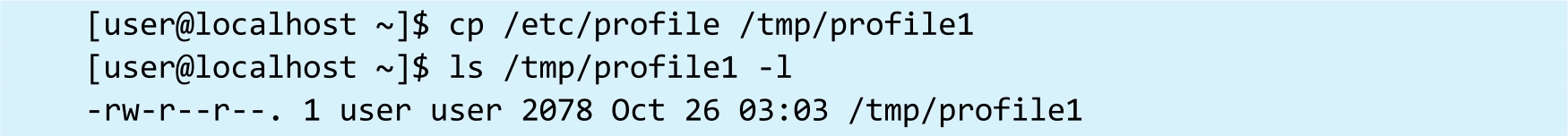复制/etc/profile到/tmp,并重命名为profile1,命令如下,使用ls可以验证复制操作是否成功。