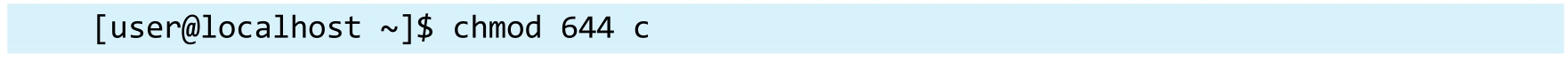 使用数字法增加 /home/user/c文件Owner的read权限。一个文件有3组权限位,分别对应Owner、Group和Other用户的权限。每组权限又有3个权限位,分别是read、write和execute。数字0和1表示每一个权限位上的状态,如果有这个权限,就用1表示,如果没有这个权限,就用0表示,因此,每组权限用3个二进制的位来表示,这3个二进制的位又可以换算成1个8进制的数,因此,3组权限位最终对应3个8进制的数字。
